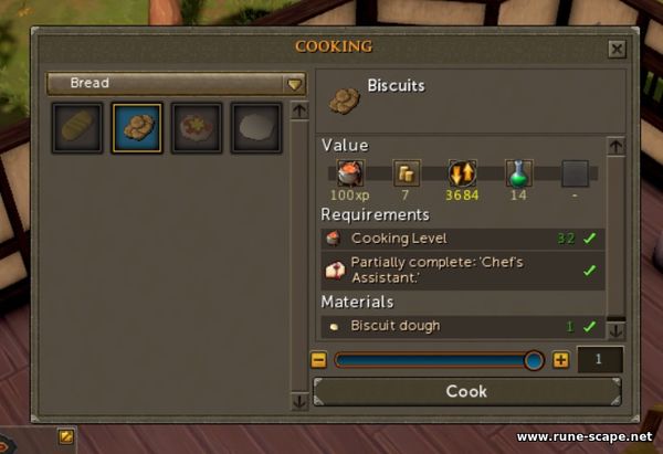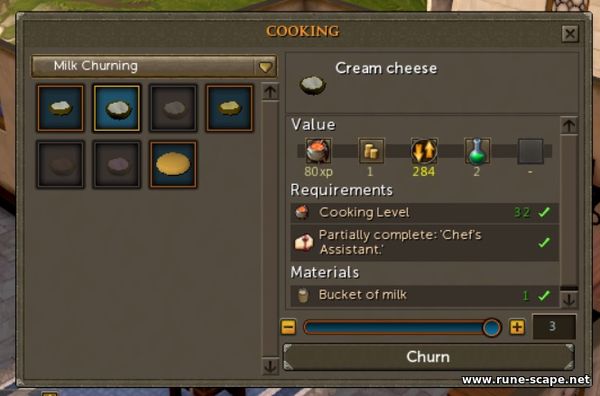 Предварительные условия - завершенный квест Cook's Assistant, уровень 38 навыка Cooking