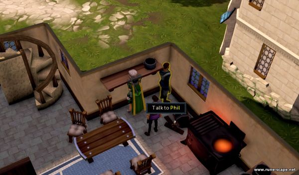 Поговорив с Филом и Дельфи, они попросят игрока починить маслобойку, используя бревна и стальной стержень, которые вам выдаст Фил .