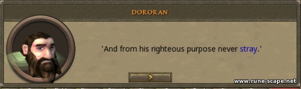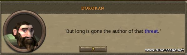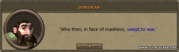 1. Чтобы начать квест, идем в Barbarian Village и говорим с гномом по имени Dororan, сидящим у восточных ворот деревни. Он начинает разговор со стихотворения и рассказывает, что безумно любит деревенскую девушку по имени Гудрун и хочет сделать ей подарок.