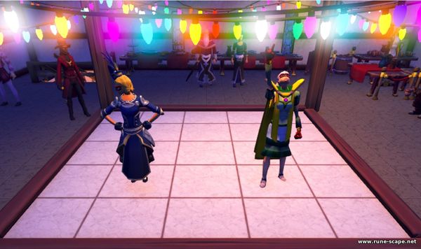 Поговорите с женщиной в маске, стоящей около танцпола, и примите участие в танцевальном состязании, чтобы получить третий жетон.