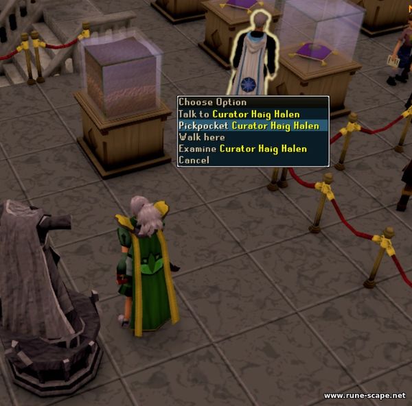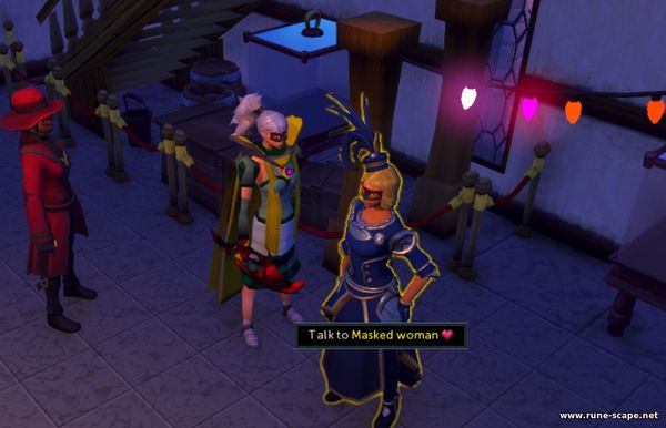 3. Теперь пришло время непосредственно самого ограбления. Но не всё так просто, вернее, я бы даже сказала, что последний этап подготовки к этому "преступлению" довольно сложен. Говорим снова с Кэлин. Она скажет вам, что приготовления завершены, а затем телепортируется за пределы музея Варрока. Поговорите с Кэлин в музее, и она подарит вам маску Алой Воровки . Наденьте маску и поговорите с ней еще раз, а затем скажите, что готовы войти.