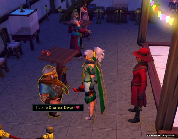 Поговорите с пьяным гномом, и он попросит 4 жетона выпивки, если вы хотите нанять его для помощи в вашей цели