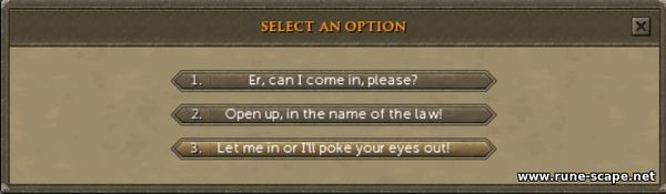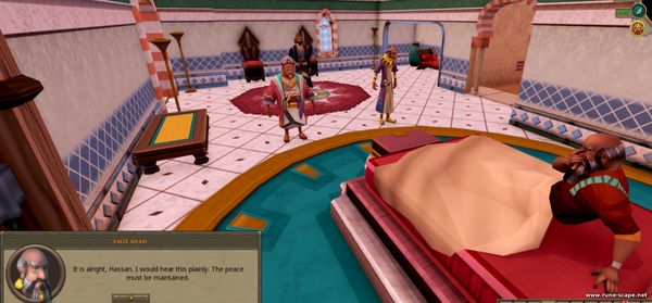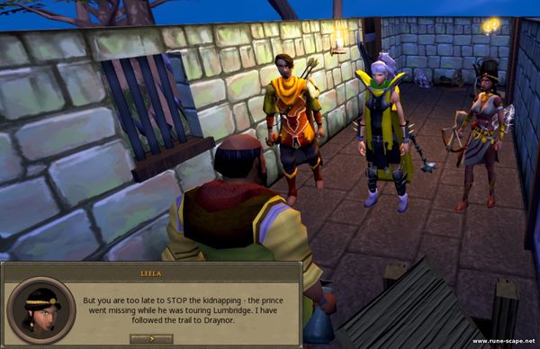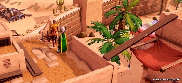 1. Идем в деревню Драйнор и разговариваем с Ozan. Он стот около дома с люком, на юге от гончара. Он говорит, что слышал о ваших приключениях и хотел бы, чтобы вы помогли ему в одном из них. Когда он рос в Аль-Хариде как неопытный вор, он подружился с Хнумом , дворцовым стражником. Когда он стал старше и стал более известен своими воровскими навыками, Озан был пойман и изгнан из города за проникновение во дворец, после чего он потерял связь со всеми в Аль-Хариде, включая Хнума. Спустя годы Хнум, очевидно, присоединился к многообещающей банде, обосновавшейся в деревне Дрейнор . Озан подозревает, что его друг, миролюбивый персонаж, ввязывается в нечто, с чем он не сможет справиться самостоятельно.