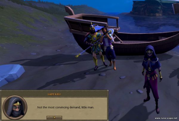 7. Внезапно появляется Лила , принимая вас и Озана за членов Черепов, готовых стрелять из арбалета. Объяснив ей ситуацию, вы обнаруживаете, что упомянутое похищение Хнума связано с принцем Аль-Харида, Али - его схватили, когда он путешествовал по Ламбриджу. Вам предлагается использовать несколько методов допроса Хнума — выберите вариант, позволяющий ему оставаться взаперти. Озан, используя свои знания о Хнуме, помогает вам убедить его отказаться от плана похищения. Хнум показывает, что они просто приспешники, работающие на Леди Кели.