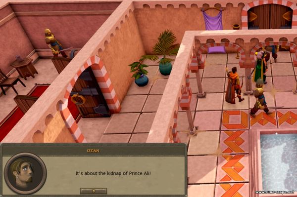 12. Поднимитесь еще раз по лестнице дворца и снова поговорите с главным стражником, скажите ему что у вас срочная новость о принце Али. Важный момент - удостоверьтесь, что Озан следует за вами автоматически. Вам снова не пропустят во дворец, но вы твердо намерены туда проникнуть, пусть и другим способом.