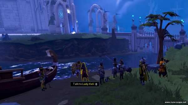 8. Идите на юг к мосту, ведущему к Башне Волшебников. На западе от него, на берегу, вы найдете Леди Кели. Поговорите с ней.